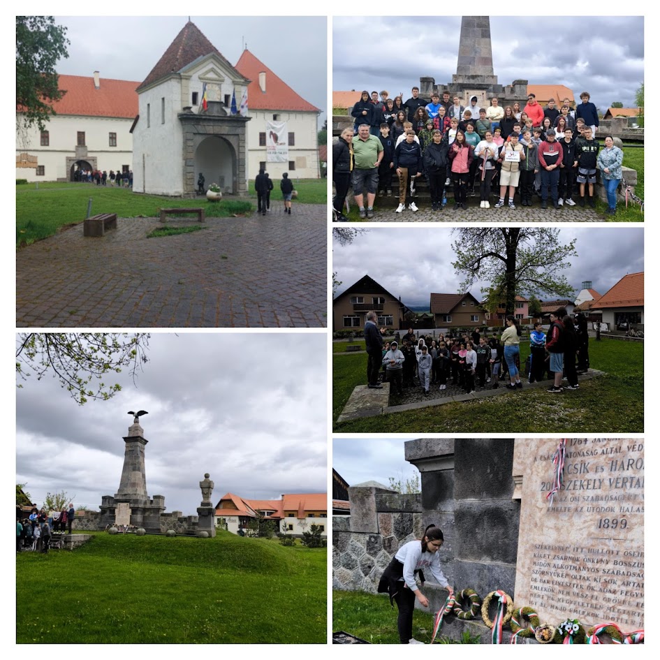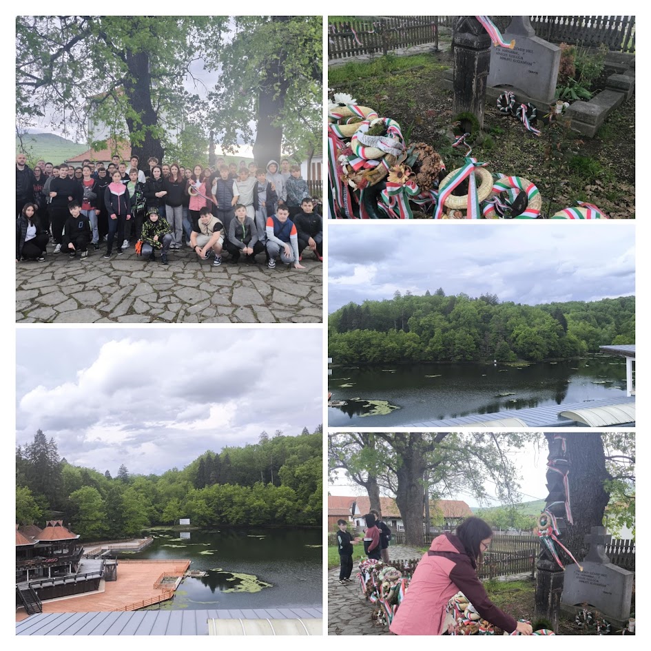 A szerdai napunk reggelén gazdag svédasztalos reggeli várt minket a csíkszeredai szálláson. Innen már csepergő esőben a Csíki Székely Múzeumot látogattuk meg, ahol a csíki székely emberek életéről, népviseletéről, szokásairól, mindennapjairól, valamint a jellemző mesterségekről, a juhászok életéről, a Mikó vártörténetéről is élvezetes előadást hallottunk. Az említett katonai történetek után, még a harci mentét is felpróbálhatták a gyerekek. Utunk a Kegytemplomba vezetett, ahová az éppen zajló mise miatt éppen csak bepillantani tudtunk, így sajnos a híres Csíksomlyói Szűz Mária szobrot nem láthattuk, de reméljük az ott megfogalmazódott kívánságok valóra válnak. Madéfalván megismertük a veszedelem történetét, csak egyetlen szót kell megjegyezni: SICVLICIDIVM, ahol a betűket római számként összeadva megkapjuk a történelmi esemény évszámát. Ezután megkoszorúztuk az emlékművet, majd folytattuk a kirándulásunkat. Úticélunk a Gyilkos-tó volt, meghallgattuk honnan ered az elnevezése és sétáltunk a bazársoron. Utolsó és egyben legizgalmasabb programunkon a Békás-szoros meredek útjain vitt a busz minket, majd onnan gyalogtúra következett a szakadó esőben a lélegzetelállító szurdokvölgy szerpentinjein. A szállásra vezető út nótázástól és nevetéstől volt hangos. A vacsorán különleges helyi ételt, csorbát kóstolhattunk.