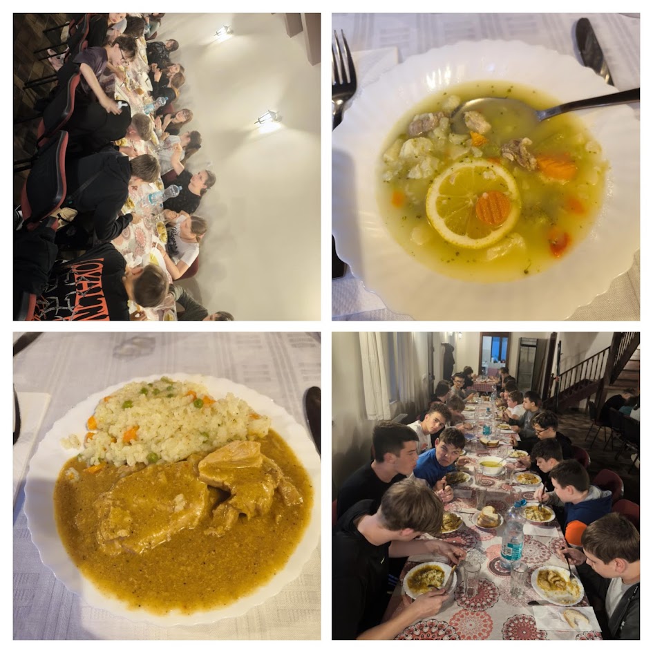 Az éjszakát Csíkszeredán töltöttük, a hotelszobában kényelmes ágyban még a BL meccset is végigizgulhatták a fiúk.