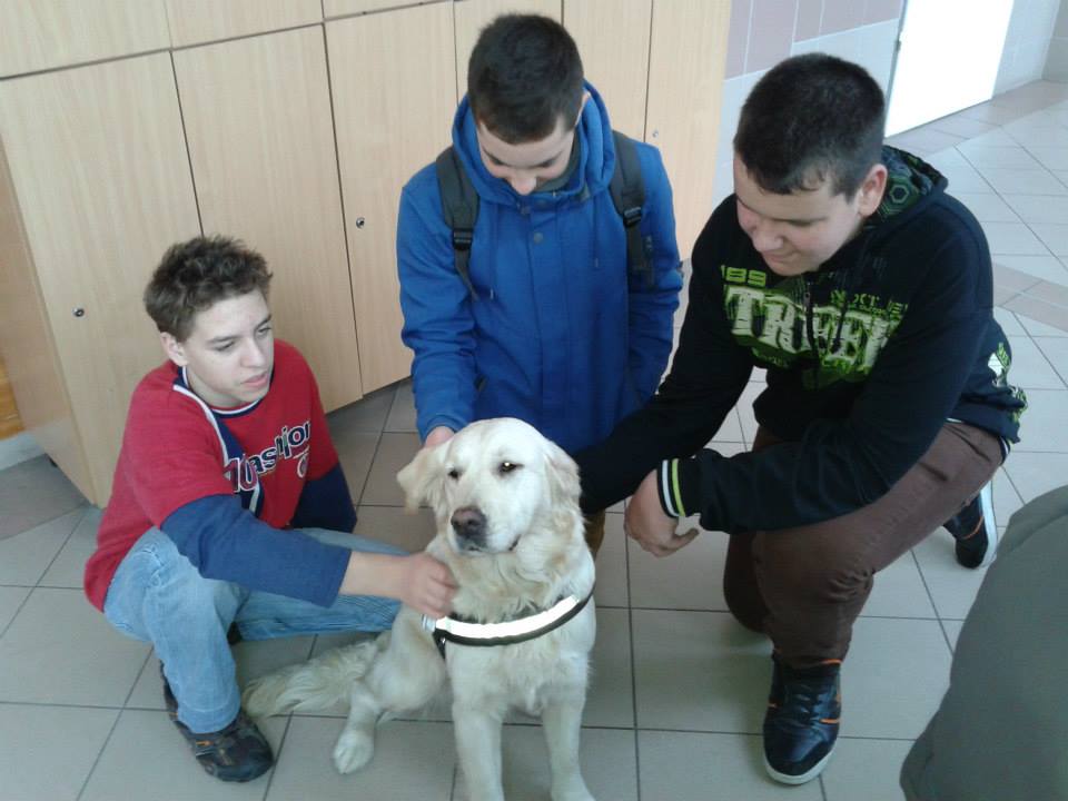 „Kutyával egy mosolyért…”. Ez annak az alapítványnak a neve, ami manapság nap, mint nap látható az iskolában. A felirat egy négylábú csoda nyakában olvasható. És való igaz, a mosoly garantált gyereknél, felnőttnél egyaránt. A mosolyfakasztó felirat viselője egy gyönyörű Golden retriever, aki a Mila névre hallgat. A héten már meg is történt az ismerkedés osztályfőnöki órákon Milával és gazdájával Nagyné Tellér Ginával.