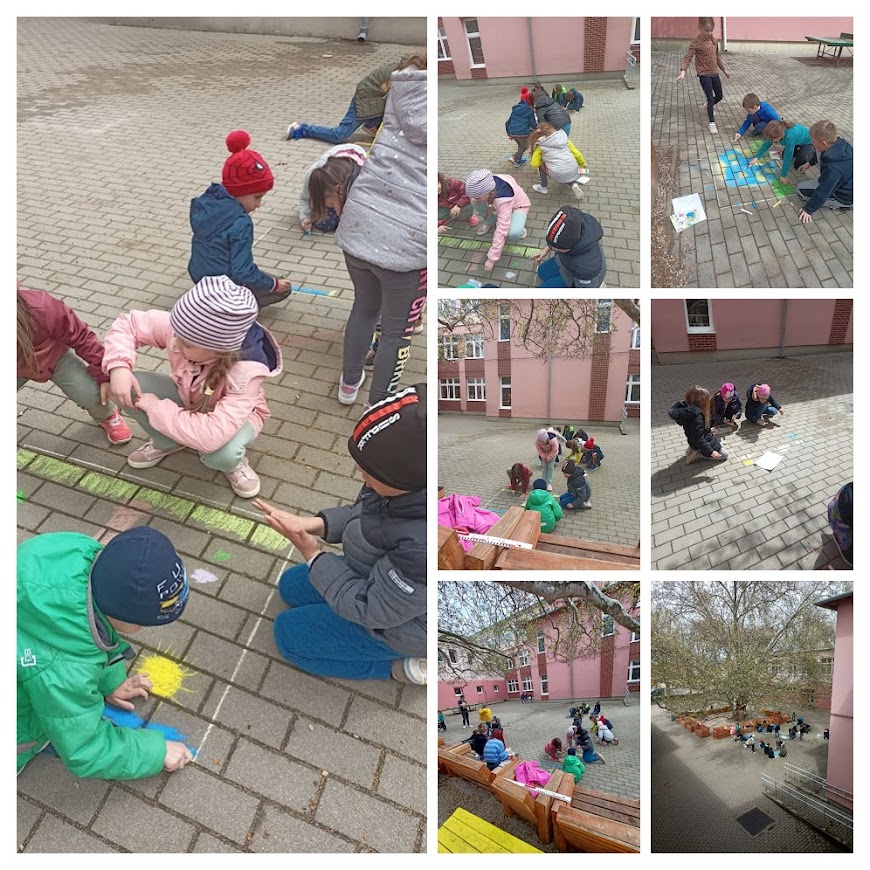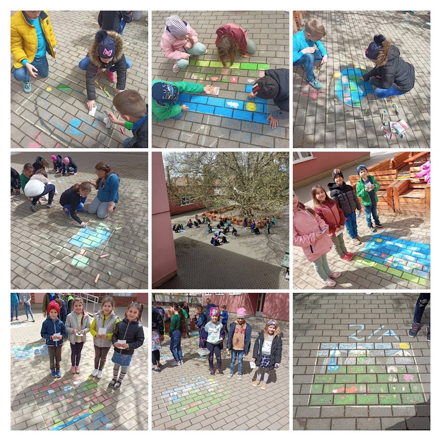 A Föld napja alkalmából aszfalt rajzok díszítették udvarunkat a nagy Platán alatt.