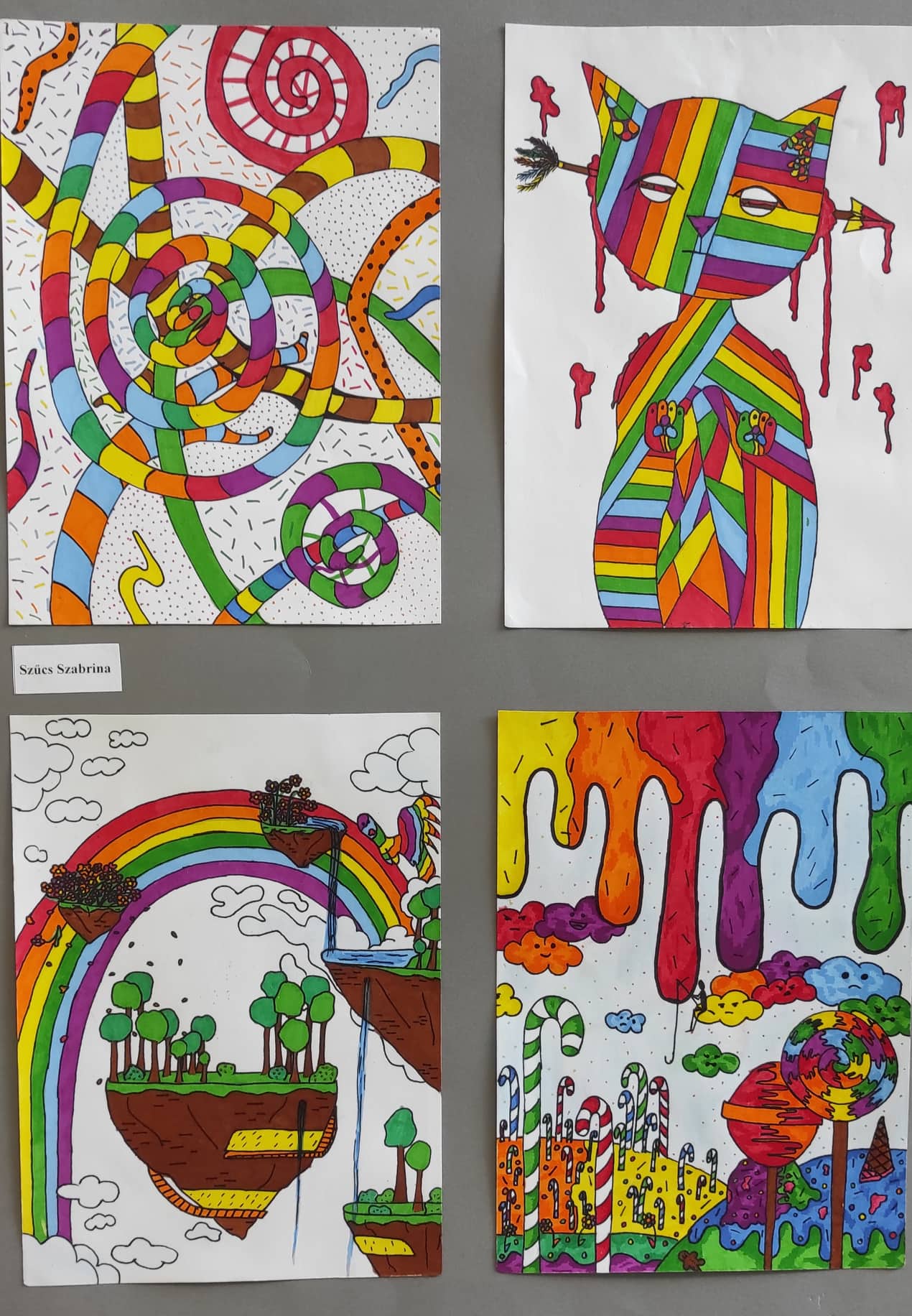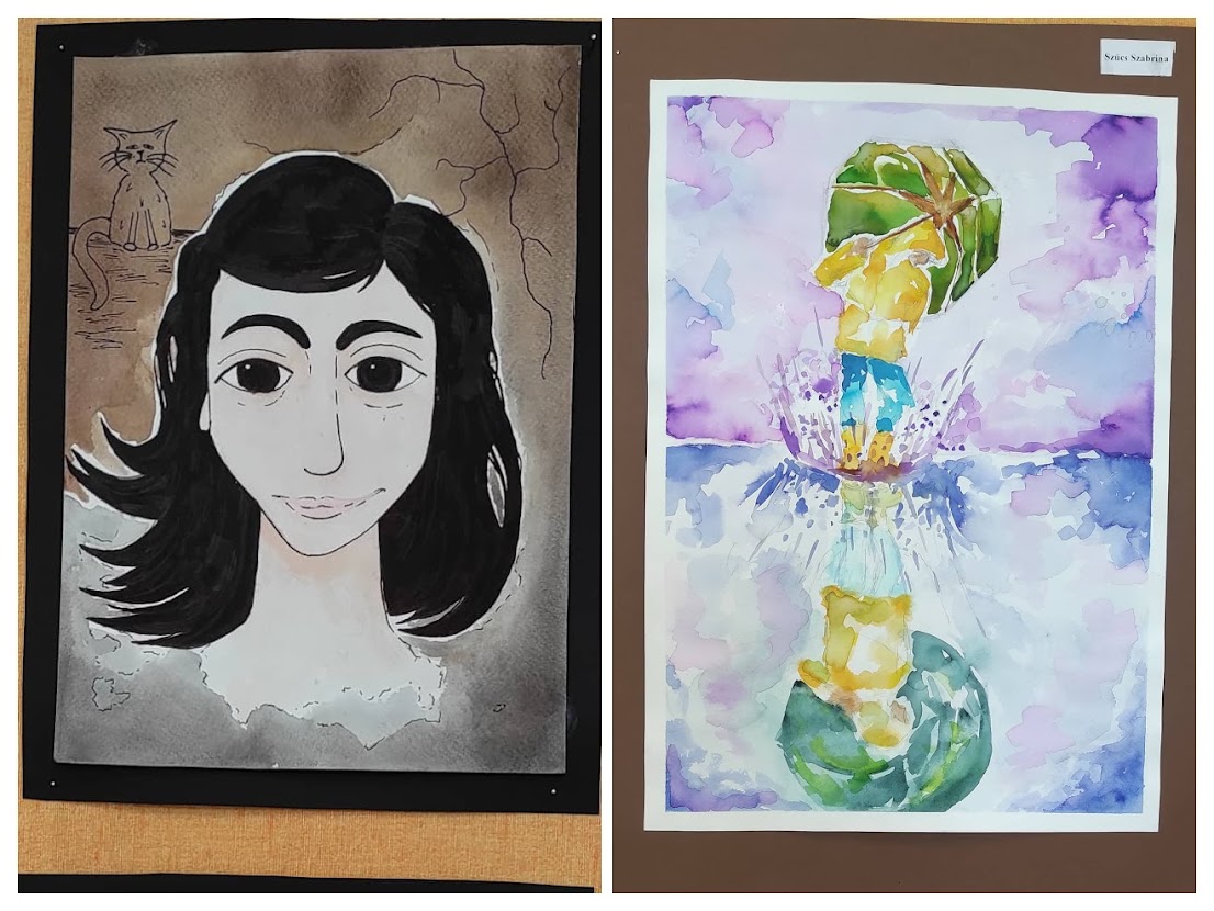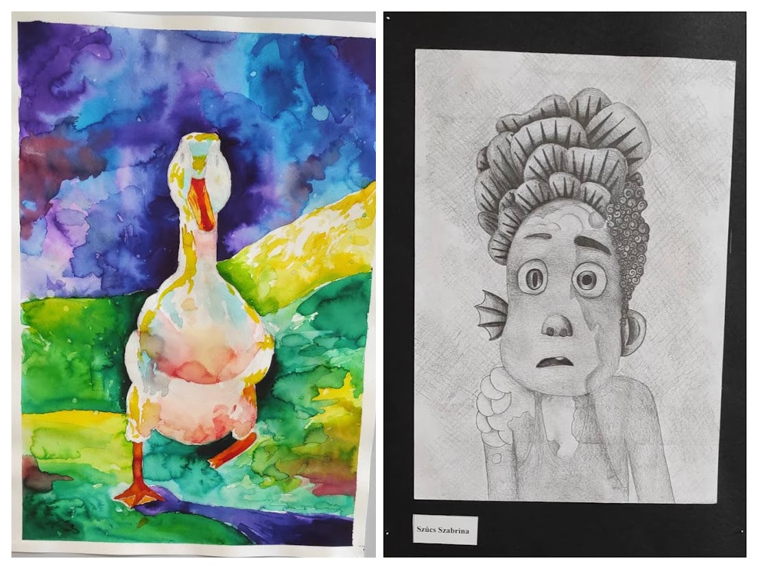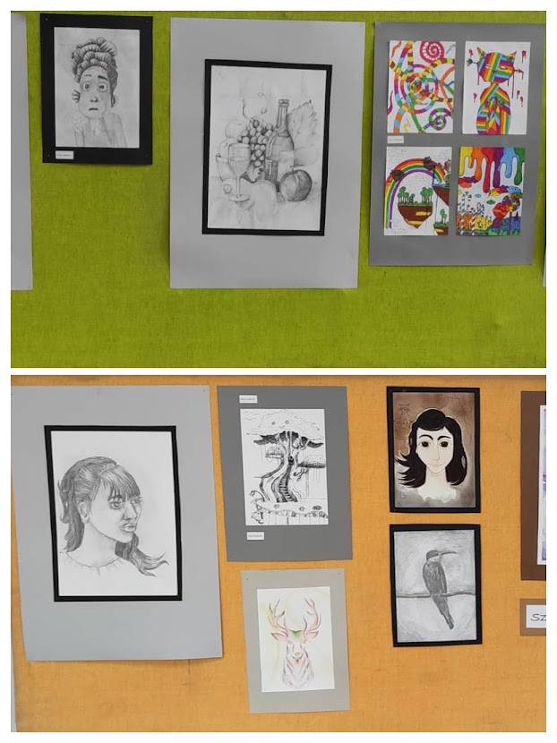 A Vargában már hagyomány, hogy egy nyolcadik évfolyamos diákunk, aki a művészeti iskolában képzőművészet tanszakon (is) jeleskedik, kiállítást kap az iskolában. Idén ez a megtiszteltetés Szűcs Szabrináé, akinek káprázatos művei az első emeleti aulát díszítik a kiállítás végéig.