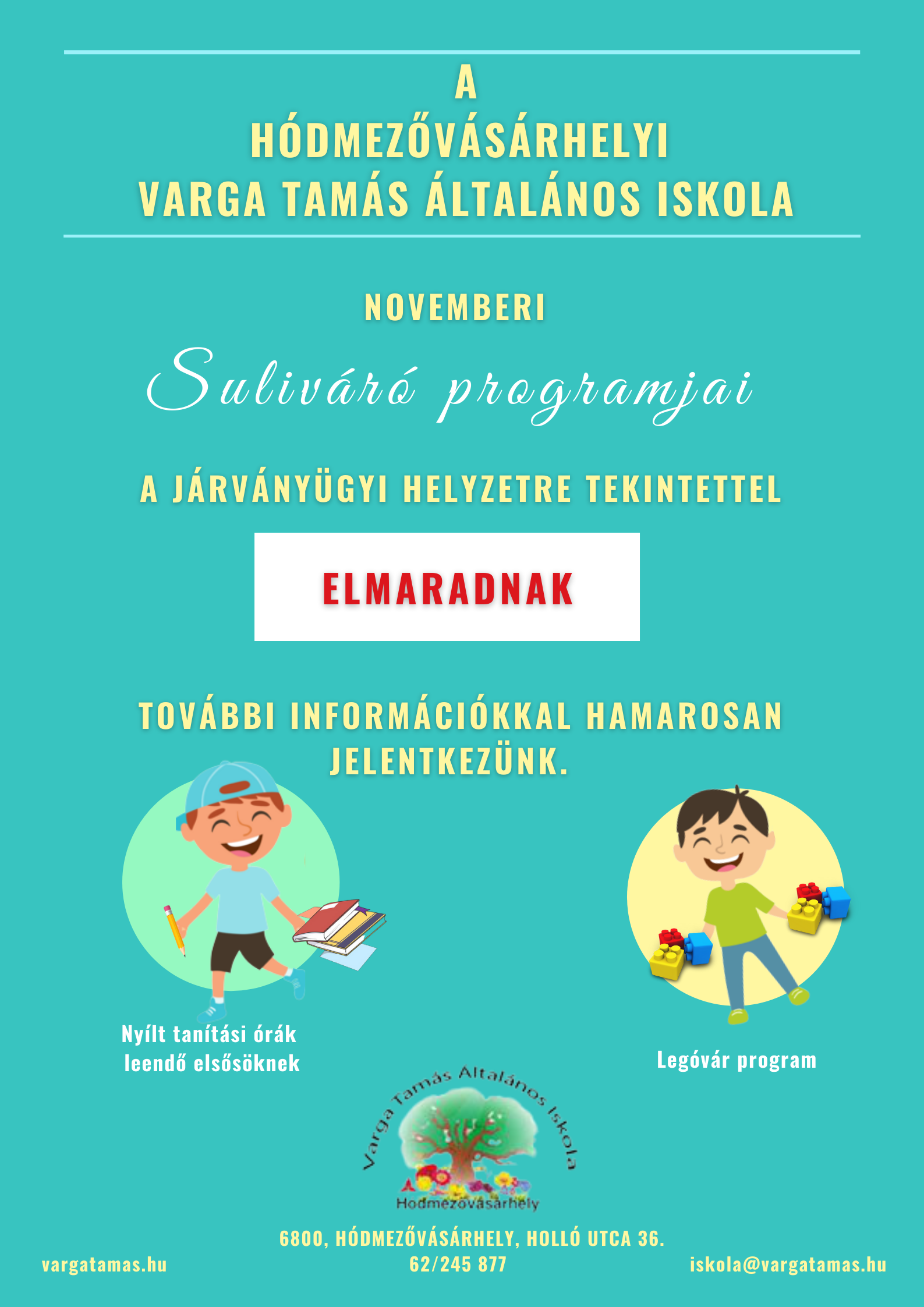 Szeretettel köszöntjük Önt a Hódmezővásárhelyi Varga Tamás Általános Iskola honlapján.