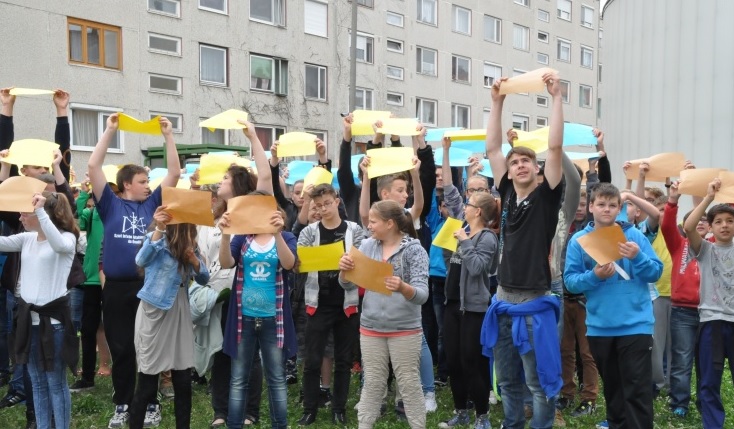 A Köznevelés az iskolában című pályázat részeként a túlzott internethasználat veszélyeire hívták fel a figyelmet május 22-én délután azzal a flashmob akcióval, amelynek keretében mintegy 150 diák formázta meg a vásárhelyi zászlót, kőfallal kerítve.