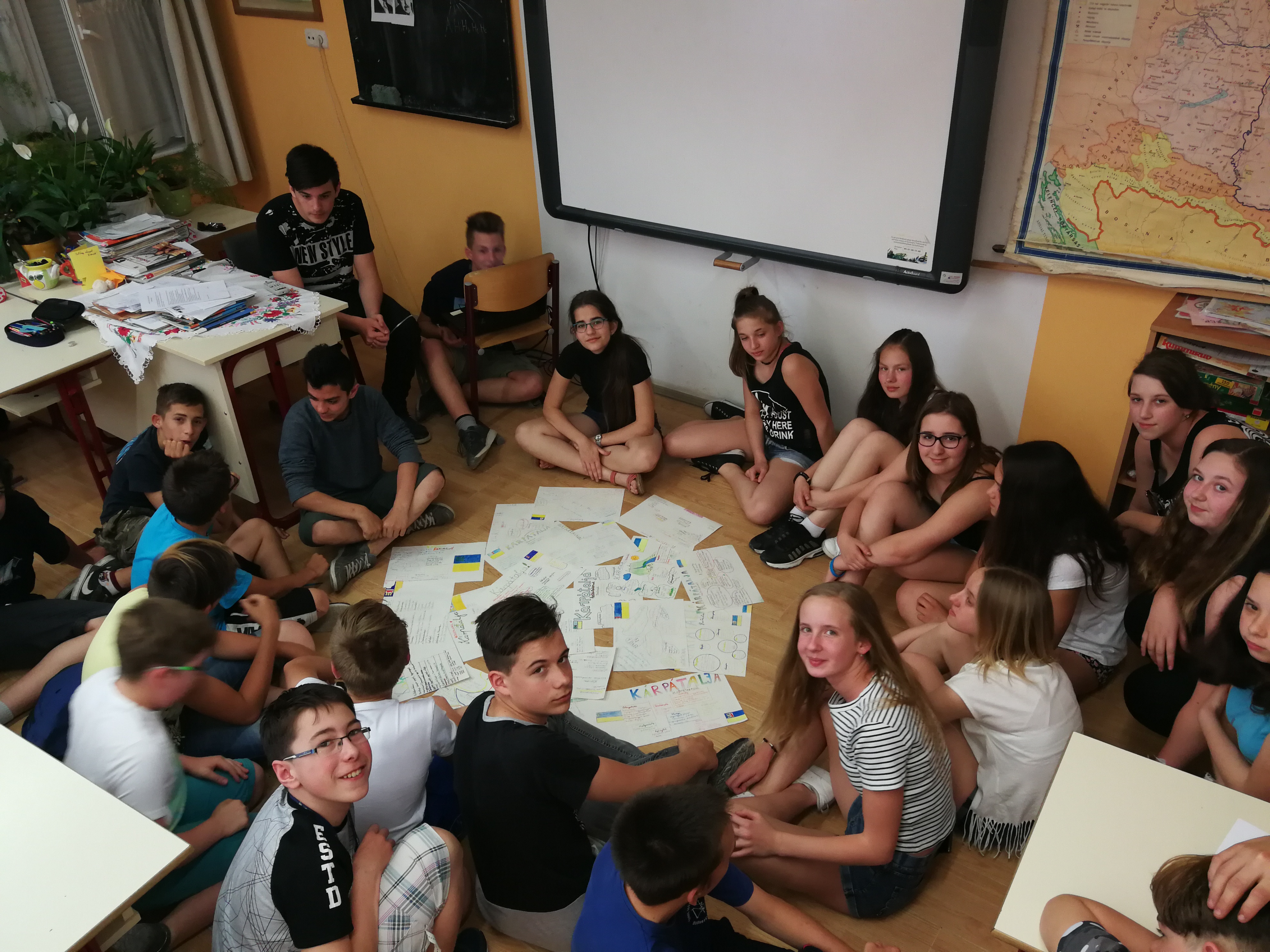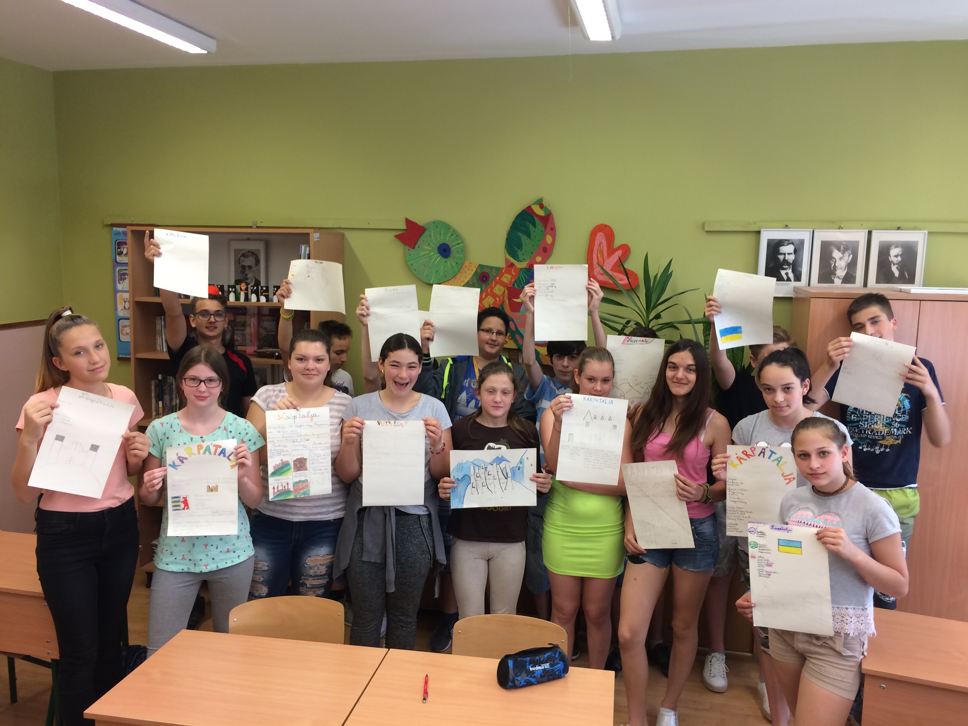 Ezen a szép májusi napon megtartottuk a Határtalanul kirándulás előkészítő óráit a kárpátaljai úthoz kapcsolódóan. 45 gyermek két csoportban vett részt a 2 órás foglalkozásokon, ahol megismerkedtünk Kárpátalja magyarságának létszámával, az államhatáron kívüli elhelyezkedés történelmi okaival; a külhoni magyarság történetével, jelenével; a kint élő összlakosság etnikai összetételével.