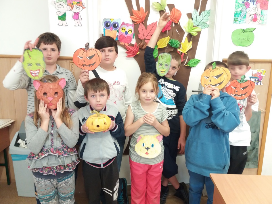 Halloween alkalmából kézműveskedtünk a gyerekekkel, ijesztő maszkokat, denevéres popcorn tartókat készítettünk, aki kedvet kapott még tököt is faraghatott.