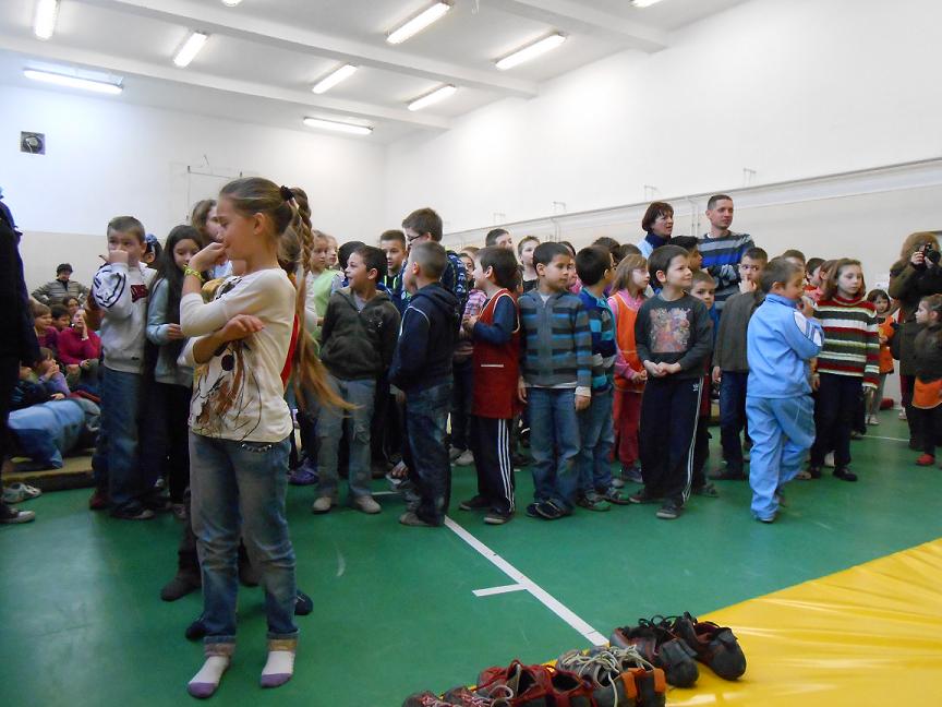 Február 18-án kedden délelőtt gyerekzsivajtól volt hangos az iskola tornaterme, ahol 9 órakor egy bemutató óra keretében felavattuk az új mászófalat. A fal egy két és fél méteres úgy nevezett boulder fal, ami azt jelenti, hogy alacsony magasságban és biztonsági kötél nélküli mászást tesz lehetővé, a biztonságérzetet pedig a fal alatti szivacs jelenti a gyerekek számára.