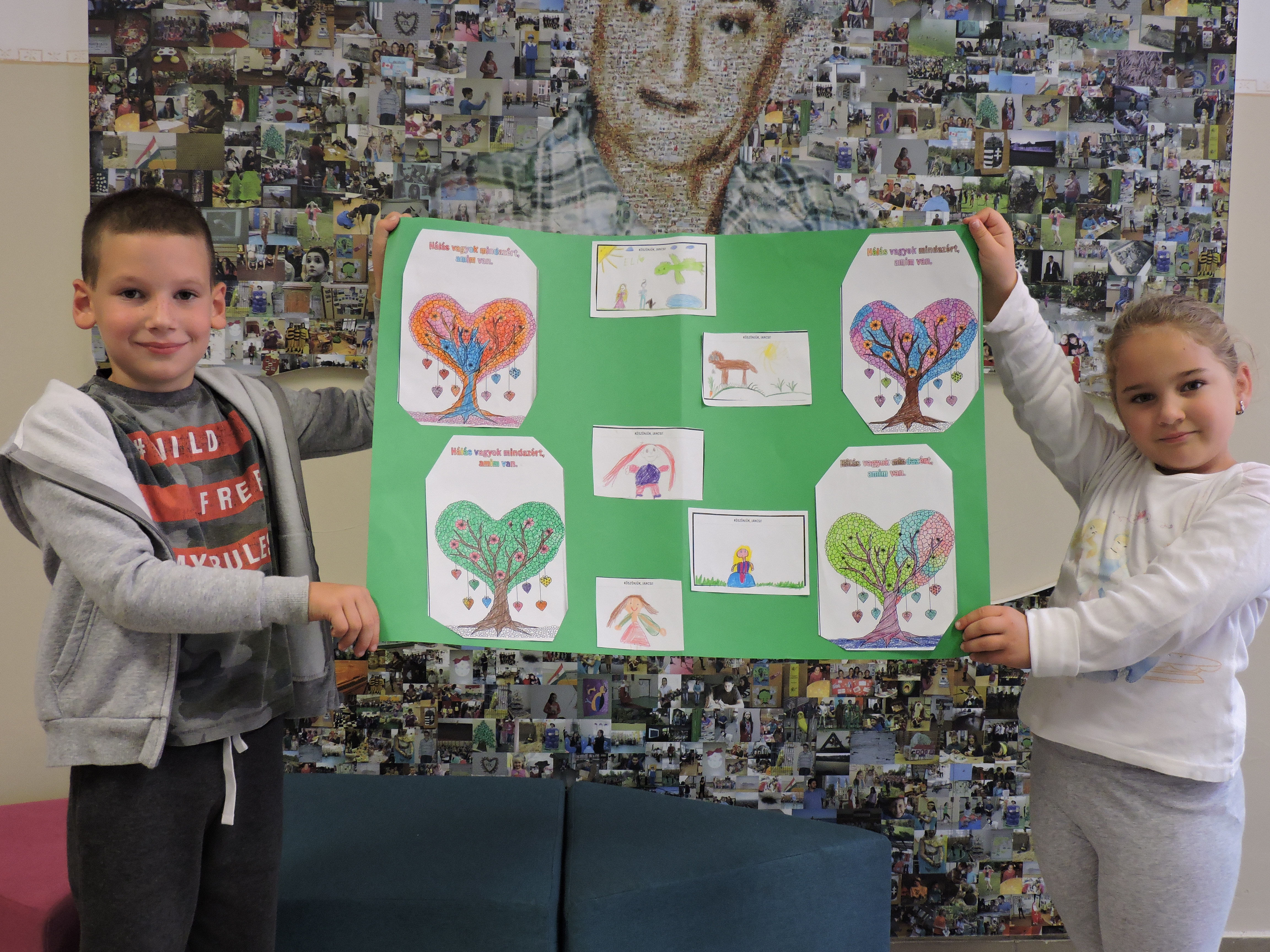 A Boldogságóra 1. hónapjának témája a "Hála gyakorlása" volt. Az 1.a osztályos gyerekek a téma bevezetése után egy tanmesét hallgattak meg. Összegyűjtötték miért lehetnek hálásak. A hálaszívet kiszínezték. Bagdi Bella dalával zárták az órát.